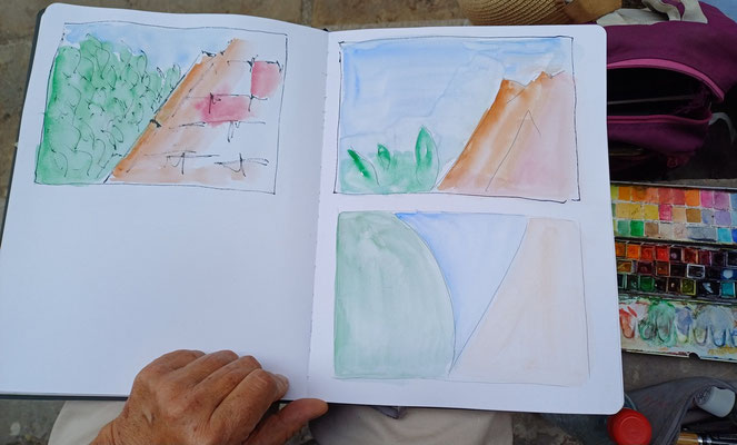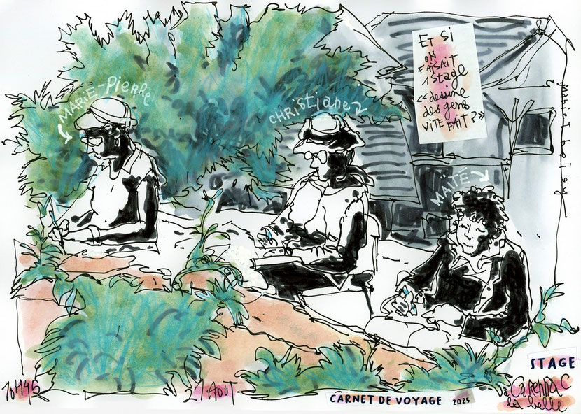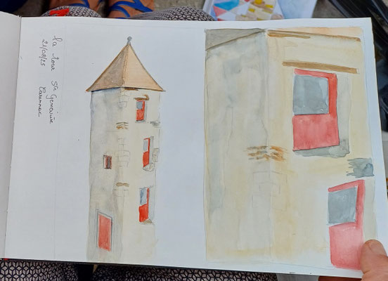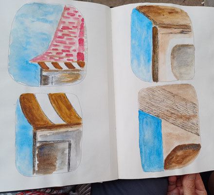 niveaux de dessin se sont retrouvés pour bricoler avec oim des croquis colorés du lieu, avec pluie et soleil comme compagnons.