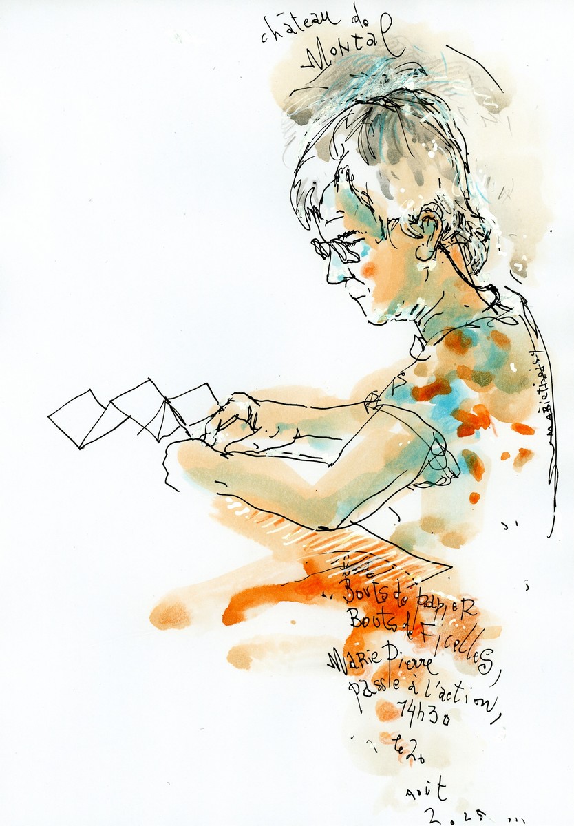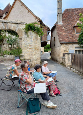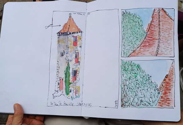 Belle journée de juillet à animer un petit stage carnet de voyage, au bord de la Dordogne et dans la grosse église de Beaulieu.
