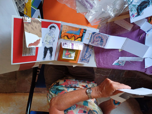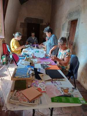 A Montal, les inscrites ont visité, crée un "carnet/bricole" genre Junk Journal, ou Art Journal, avec des matériaux de récupération. Merci le château de nous avoir prêté le deuxième étage :)