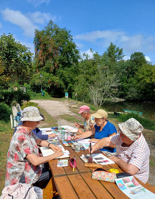 Elles peignent un diaporama des berges, en face de la chapelle des Pénitents.